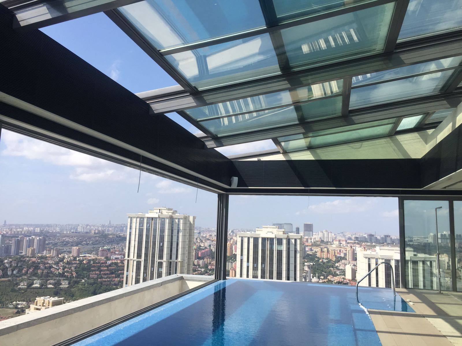 Beran Yapı olarak; kullandığımız tüm sistem alüminyumdan oluşmaktadır. Paslanmaz bağlantı elemanları ile tasarlanan hareketli cam tavan sistemleri açılır kapanır özelliğe sahiptir.